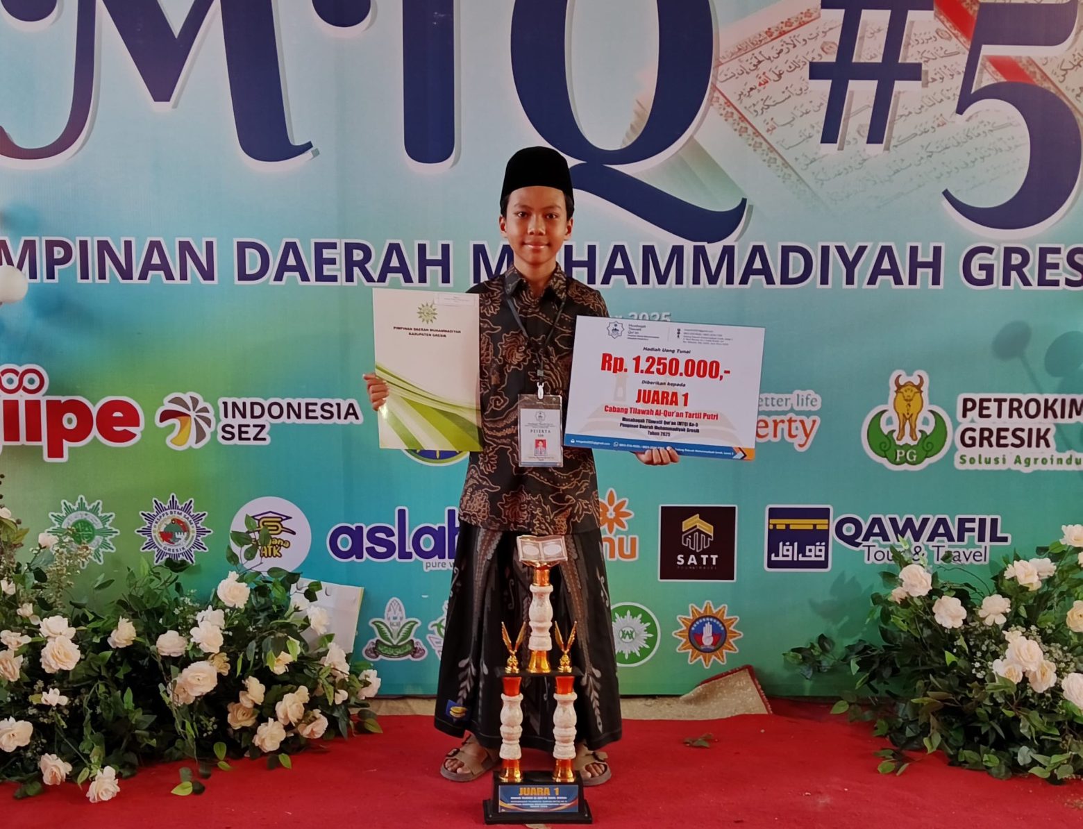 KLIKMU.CO – Dua peserta asal Kecamatan Menganti berhasil menorehkan prestasi membanggakan dalam ajang Musabaqah Tilawatil Qur’an (MTQ) ke-5 yang diselenggarakan oleh Pimpinan Daerah Muhammadiyah (PDM) Gresik pada Sabtu–Ahad (11–12/10/2025). Menariknya, keduanya memiliki nama panggilan yang sama, yaitu Zaidan Dzaka Ramadhan dan Fahri Zaidan Maulana.